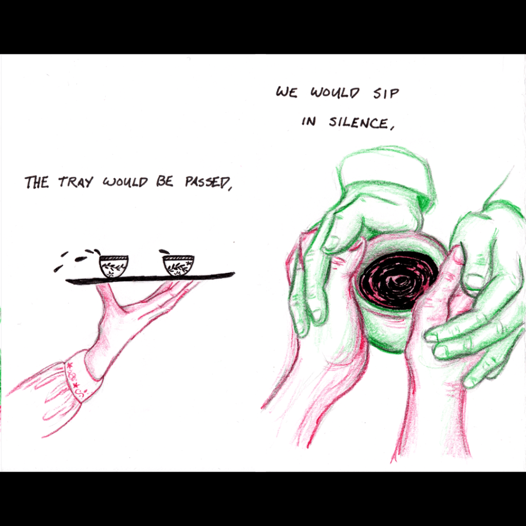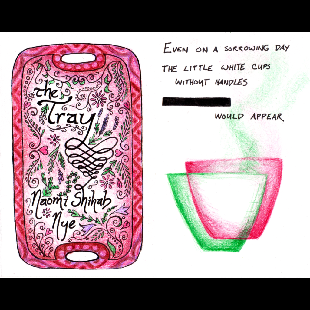 A poetry mini-zine illustrating Naomi Shihab Nye’s “The Tray”: